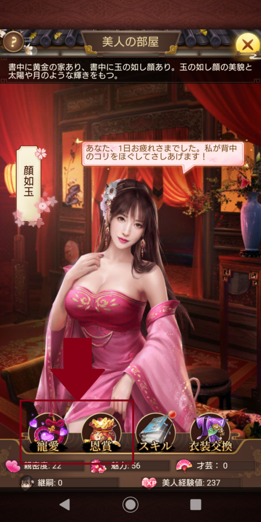 元宝を大量に使用するには少し割高だと思うので「寵愛」をする場合は、出会ったばかりの美人に使用すると良いでしょう!
