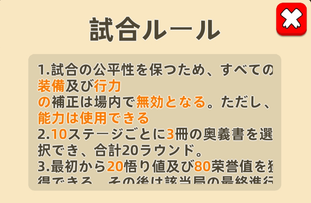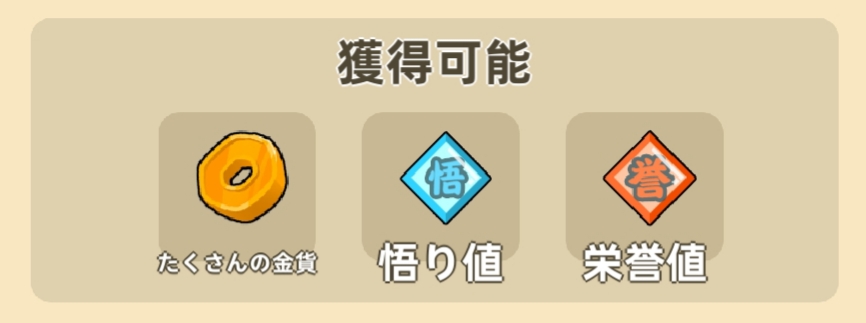 - スタートの時点で20の悟り値と50の栄誉値を獲得でき、その後はどこまで進めたかで奨励を獲得できる。