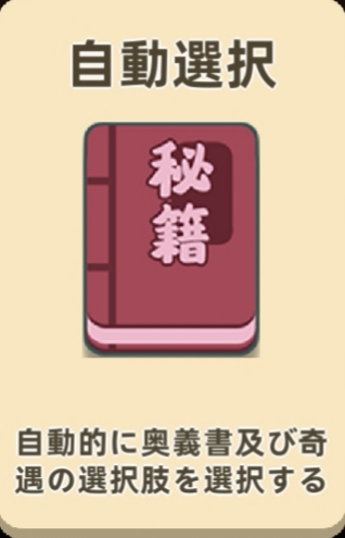 自分の総合力よりもレベルの低いエリアの周回にはかなり役に立つ機能と言えるのですが、選択する奥義書や奇遇での選択は組み合わせ技や結果をあまり意識されたものではないので、戦力を優先したいといことであれば、手動の方が効率が良いかもしれません。