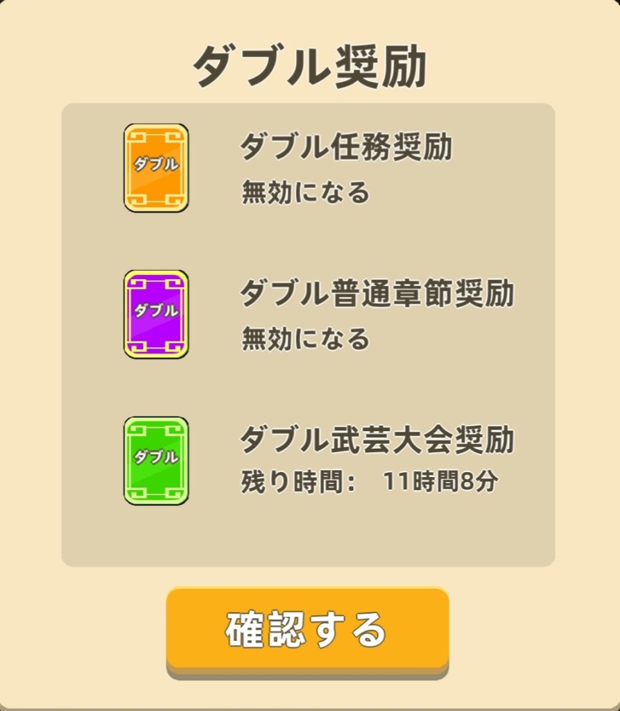 現時点で所持している奨励カードは、ホーム画面の右側にある、「ダブル時間」から確認することができます。