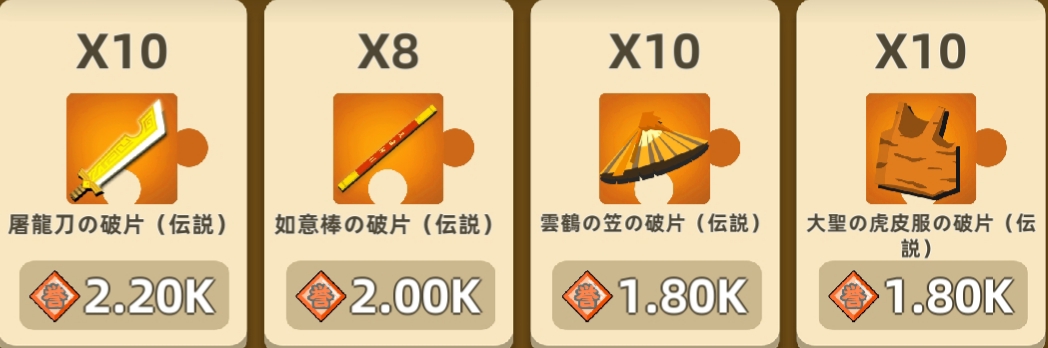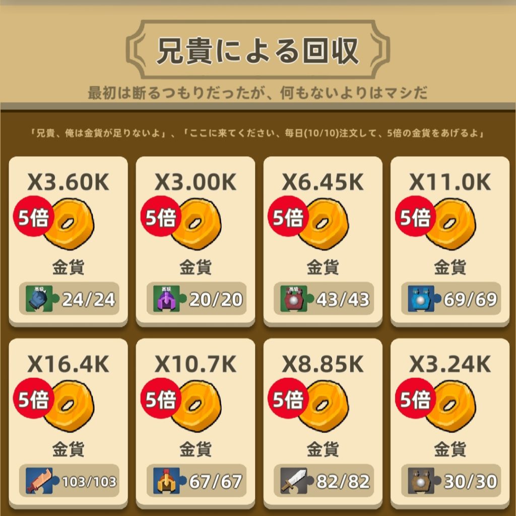 金貨に交換することで手持ちの肥やしとなっていた欠片たちも片付き、よりレアな装備へ投資することが可能となります。