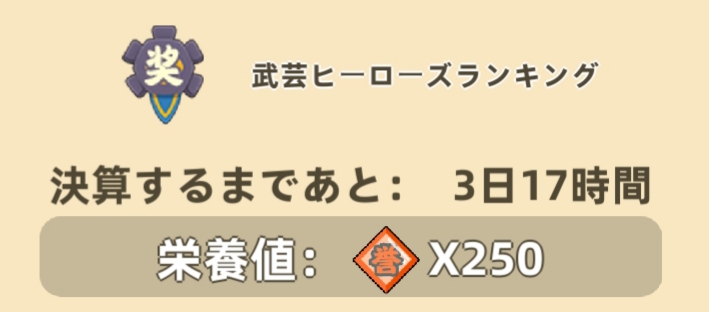 ヒーローズランキングに順位付けられたプレイヤーは、武芸大会のステージの達成度合いによって奨励を受け取ることができます。