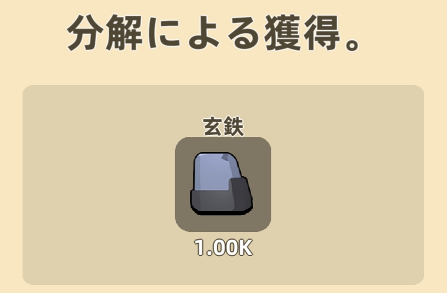 分解をすることで、武器や武具はそれぞれの欠片に、アクセサリーは玄鉄にすることができます。