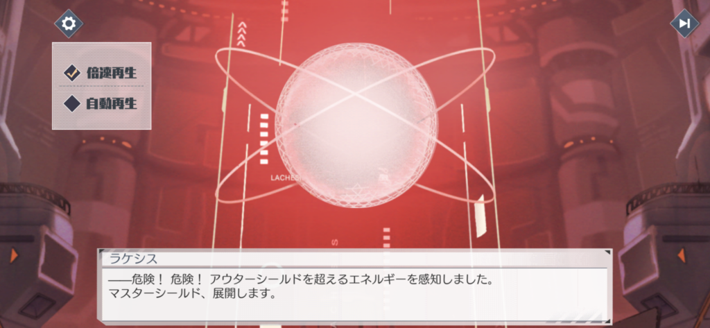 ちなみに、このストーリーもオープニングムービーと同じようにスキップできますし、倍速再生・自動再生もできます。