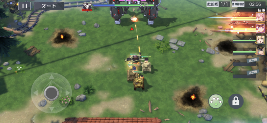 戦闘は左側のコントローラーを動かしてユニットを移動する簡単操作です。