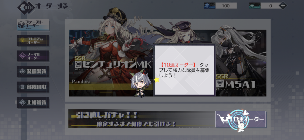 前述のようにこのゲームは序盤で引けるガチャ回数が少ないため、今回はリセマラを引き直しガチャで行うものとします。