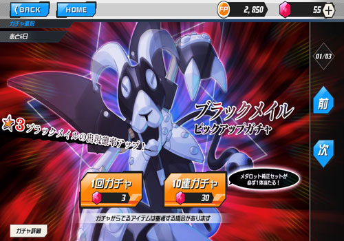 ◆ピックアップガチャでは、ピックアップされているメダロットの排出率がほんの少しだけ上がっている。