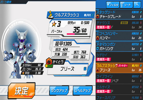 ■メダロットSの育成優先度としては、パーツ強化メダル強化メダロッター強化となっています。