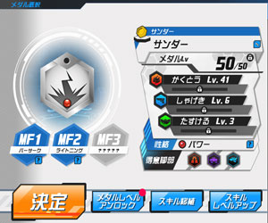 ◆サンダーメダルは、格闘攻撃と射撃攻撃が得意ですが、MF3のスキルが格闘攻撃と相性が良いので、組み合わせるなら格闘攻撃タイプのメダロットがオススメです!