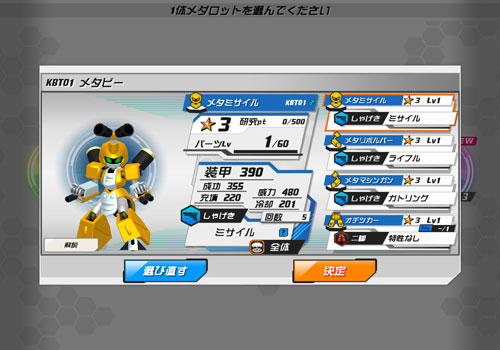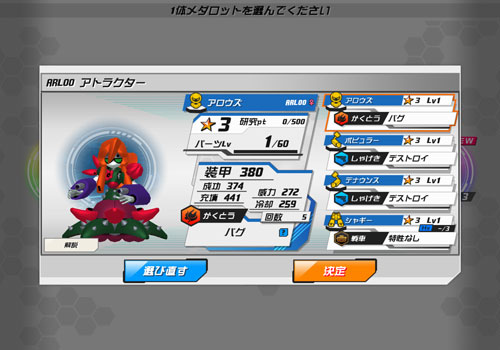 ◆この5体のメダロットの中から1体好きなものを選ぶことができます。