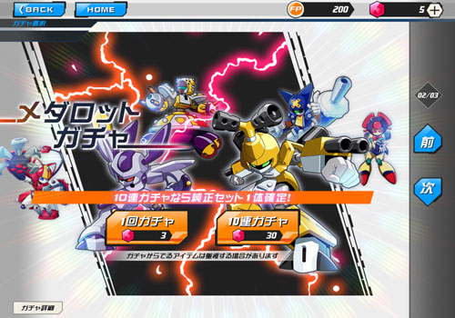 ◆10連ガチャでは、星1~星3の中からランダムで、メダロット純正セットが1体当たります!