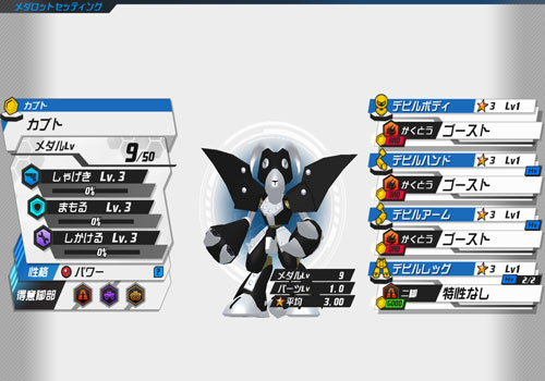 ◆メダルをセットすることにより、メダロットの性能を大幅に上げることができます。