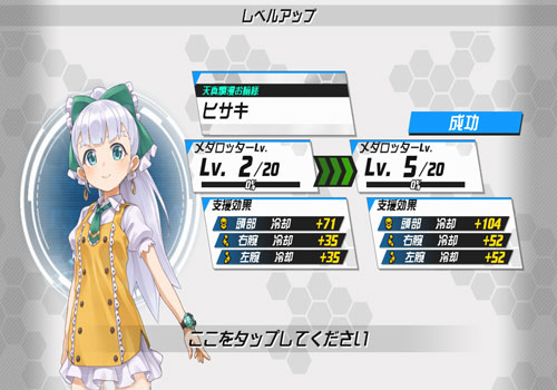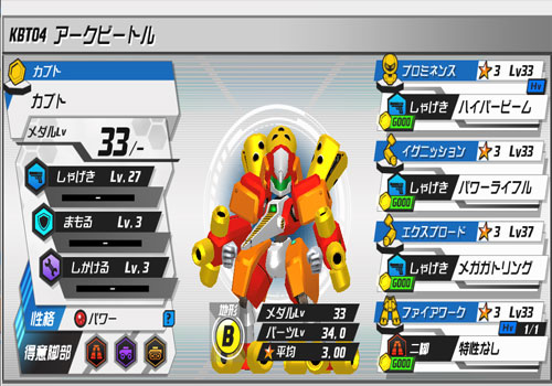 レベルを上げることにより、メダロットのステータスを上げる支援効果がアップします。
