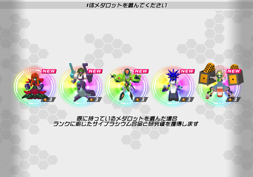 ◆こちらのチュートリアルガチャからは、ランダムで星3のメダロットがランダムで5体排出されます。