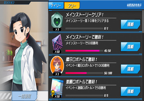 では、どうやって同名のメダロッターを集めるかというと、それは、フリーミッションを達成して集めることができます。