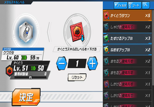 ◆メダルの育成は基本的に1つのスキルに絞って育てるのがオススメです。