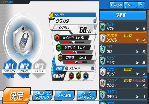 サンダーメダルとクワガタメダルは優先的に育てておいたほうがいいです。