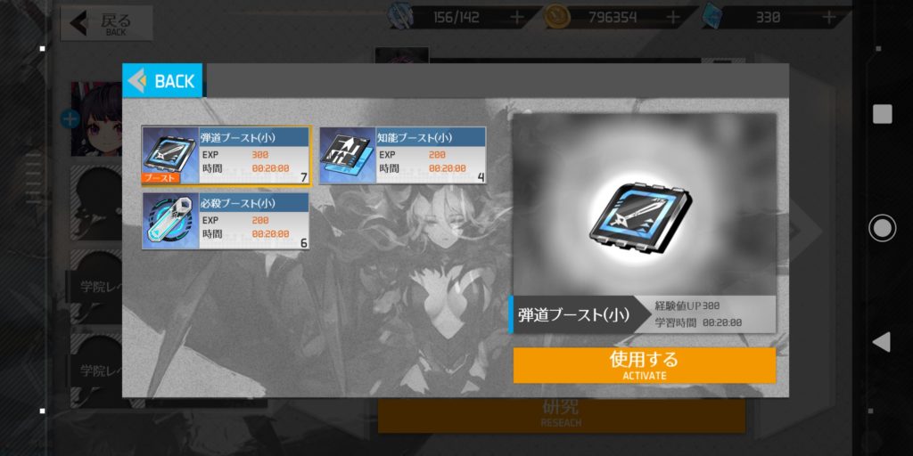 ただ、キャラを選択して上げれるわけではなく、スキルレベルを上げる専用のアイテムが必要となるのでそちらを使用して経験値を獲得していきます。