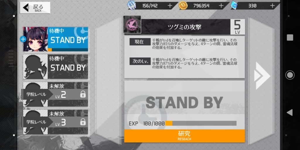 そして、軍事学院はキャラのスキルのレベルを上げることができます。