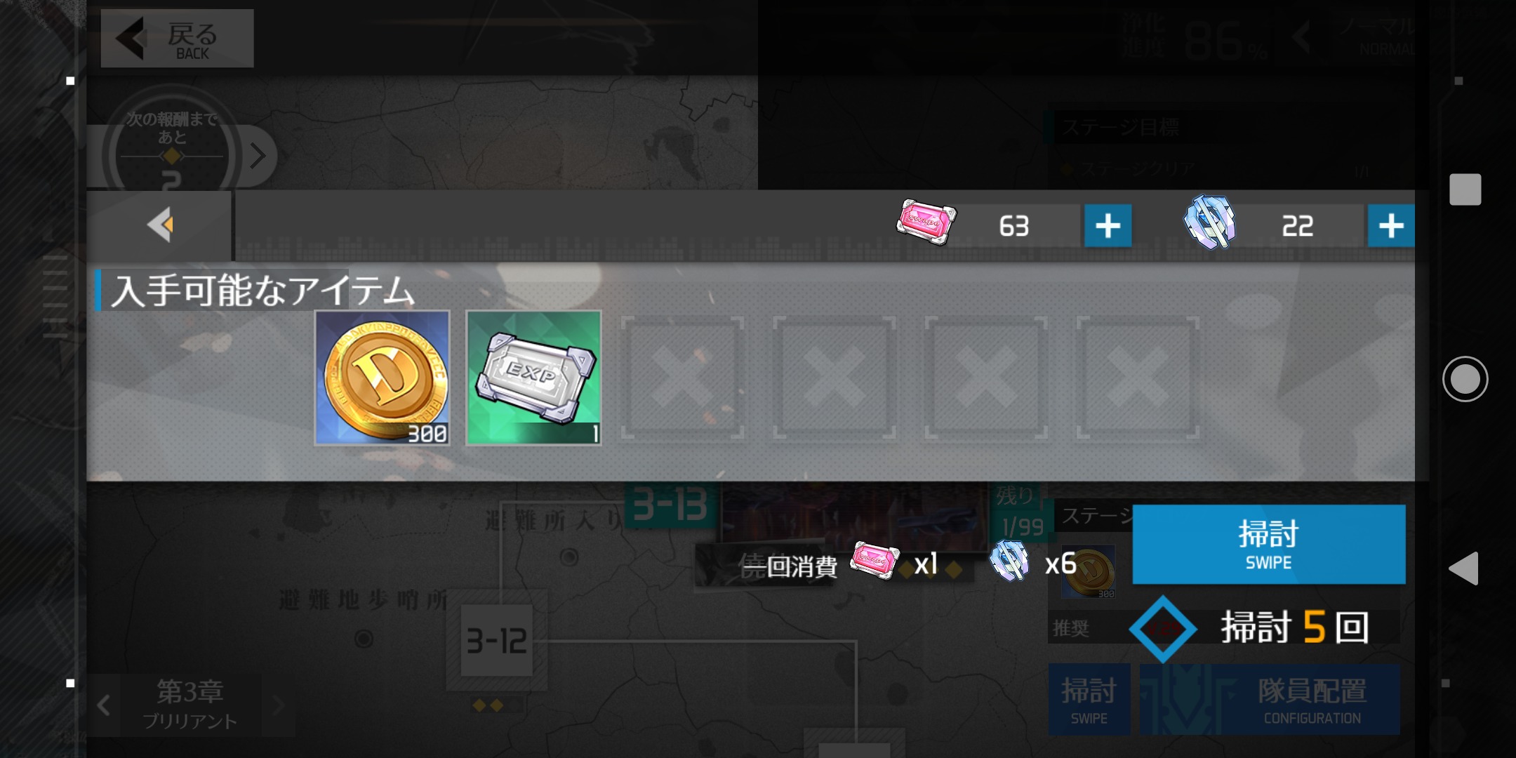 また、上記のやり方でレベルを上げていくとスタミナが一瞬で枯渇するのでスタミナに余裕がある場合に掃討機能を活用すると良いです。