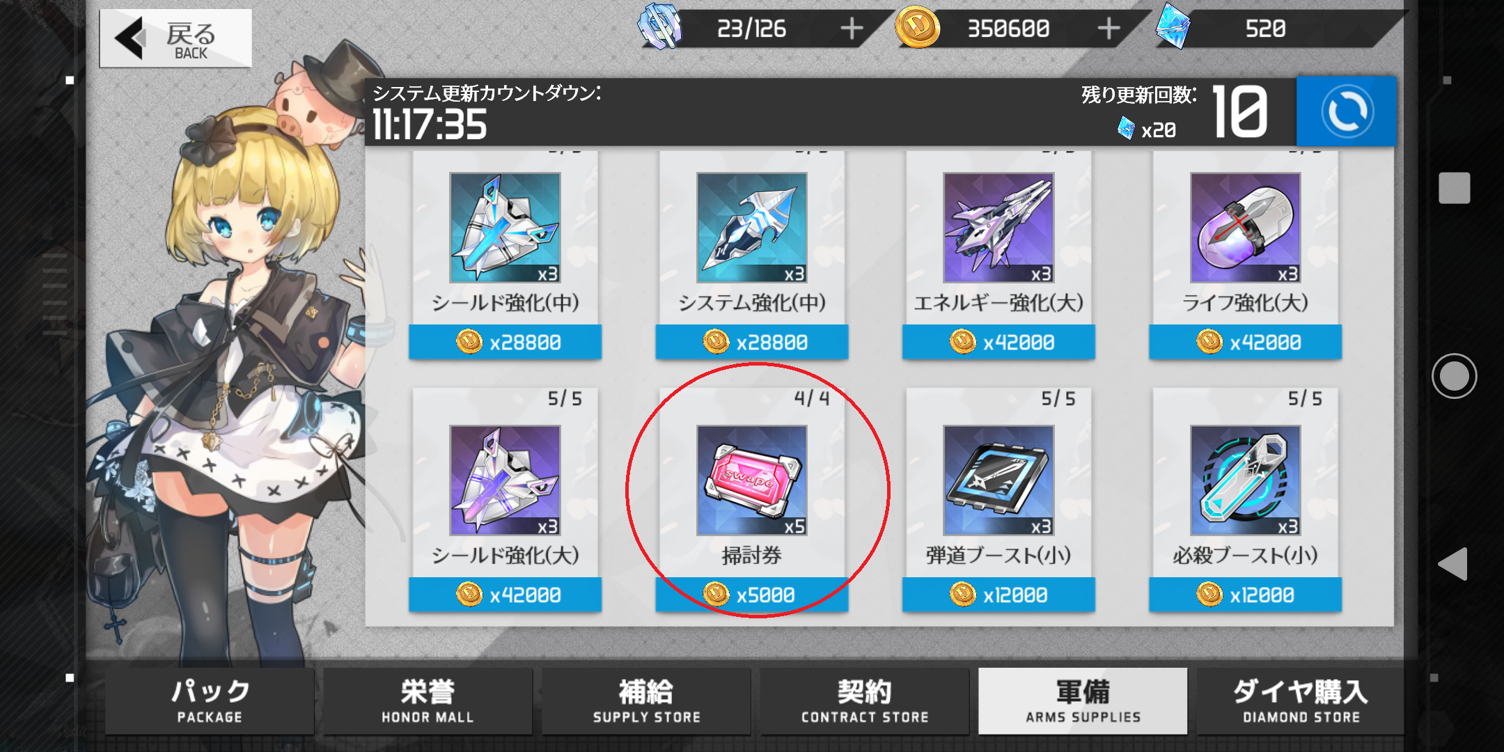 ただ、掃討するには「掃討券」が必要になりショップに行けばある程度購入できるので必ず購入をしておくと良いです。